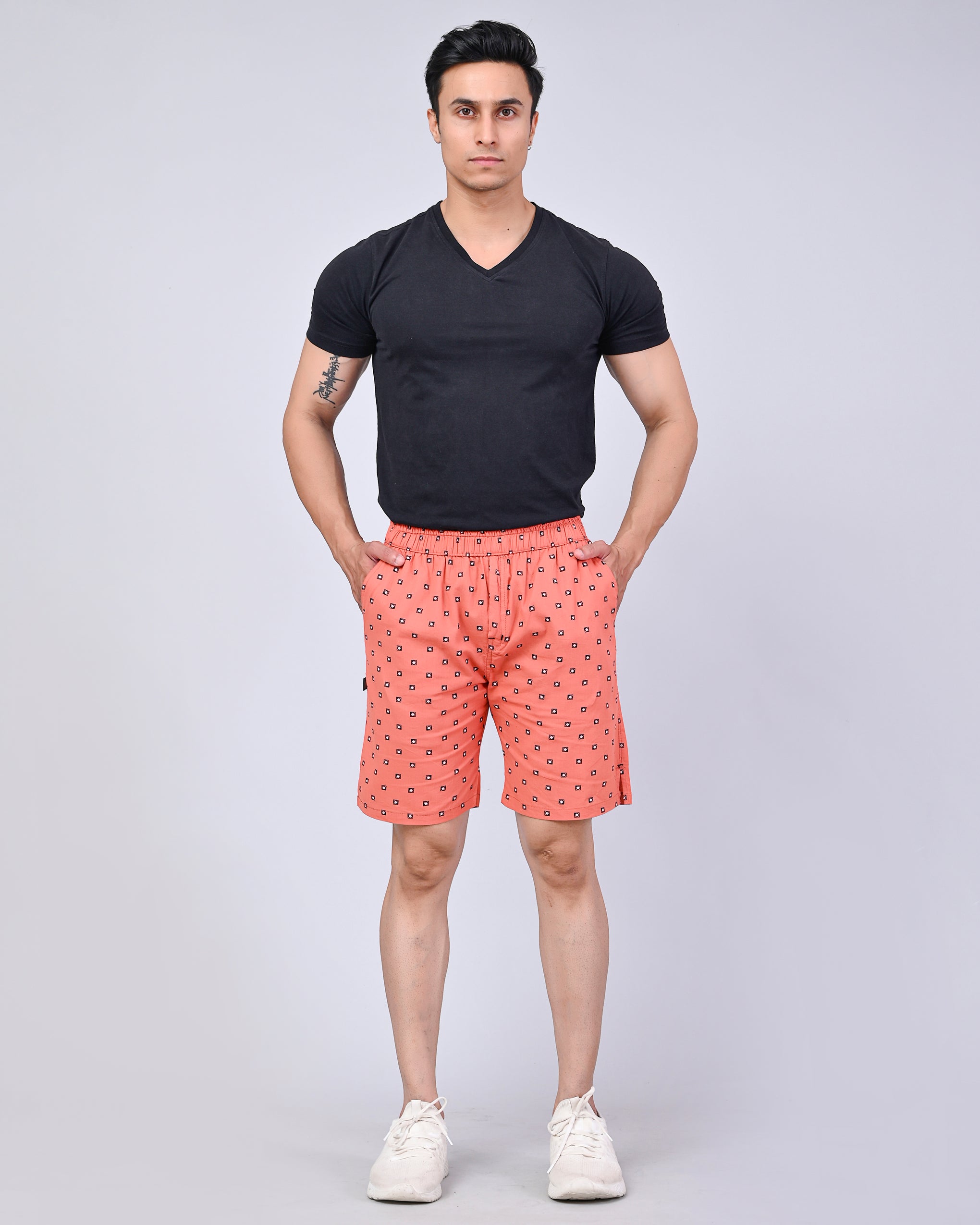 Upgrade your daily comfort with our Men’s Premium Boxer Shorts. Featuring a stylish geometric print on a soft baby pink base, these boxers strike the perfect balance between modern aesthetics and superior comfort. Ideal for a restful night's sleep or a relaxed day at home, they offer the premium feel of high-end cotton.